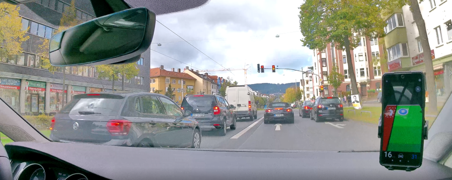 Sofern die Anforderungen in der Verkehrszentrale und den entsprechenden Ampelanlagen erfüllt sind, erhält der Verkehrsteilnehmer durch die App Angaben über eine optimale Geschwindigkeit an, mit der die Ampel bei Grün erreicht werden kann. Vor einer roten Ampel stehend erfährt die Autofahrerin wie lange die Rotphase voraussichtlich anhalten wird.