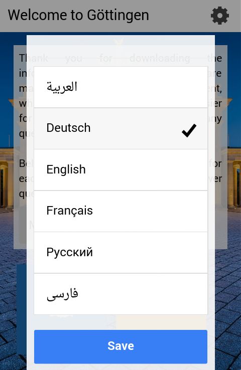 Allgemeine Informationen zu deutschen Sitten, Regeln und Recht recherchiert das Team der App selbst und speist sie in die App ein. Kommunal-spezifische Informationen müssen die Kommunen beisteuern. Die App arbeitet mit einer automatisierten Übersetzung in die Sprachen Englisch, Französisch, Arabisch, Farsi und Russisch. Experten prüfen und korrigieren die Übersetzungen gegebenenfalls. Über ein Content-Management-System können Kommunen selbst Informationen in die App eintragen. „Das Informationsangebot ist umfangreich, aber nicht unübersichtlich“, findet Johannson. In den ersten drei Monaten wurde die App in Göttingen alleine 2.000 Mal heruntergeladen. „Bei unserer Zielgruppe haben wir einen guten Abdeckungsgrad erreicht“, sagt Johannson. „Auch Interessierte aus der Flüchtlingshilfe haben sich die App runtergeladen.“