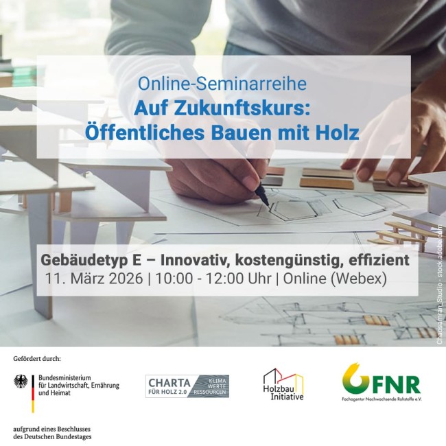 FNR-Online-Seminarreihe 2026 für Kommunen: Auf Zukunftskurs: Öffentliches Bauen mit Holz.
