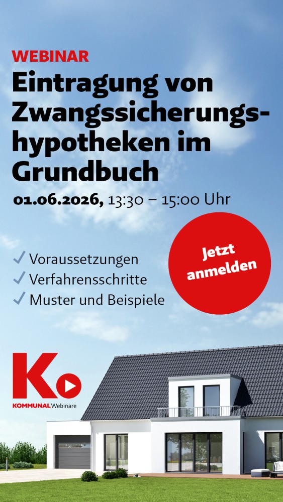 Ist der Schuldner Eigentümer eines Grundstücks stellt sich für die kommunale Vollstreckungsbehörde die Frage, ob offene Forderungen mittels Zwangssicherungshypothek am Grundeigentum gesichert werden können. Dazu müssen verschiedene Voraussetzungen erfüllt sein. In diesem Webinar werden die rechtlichen Rahmenbedingungen anhand von praktischen Fallbeispielen umfassend erörtert. Zudem erhalten die Teilnehmenden entsprechende Musterschreiben zur rechtssicheren Anwendung. Außerdem wird auf die Löschung von eingetragenen Sicherungshypotheken eingegangen.