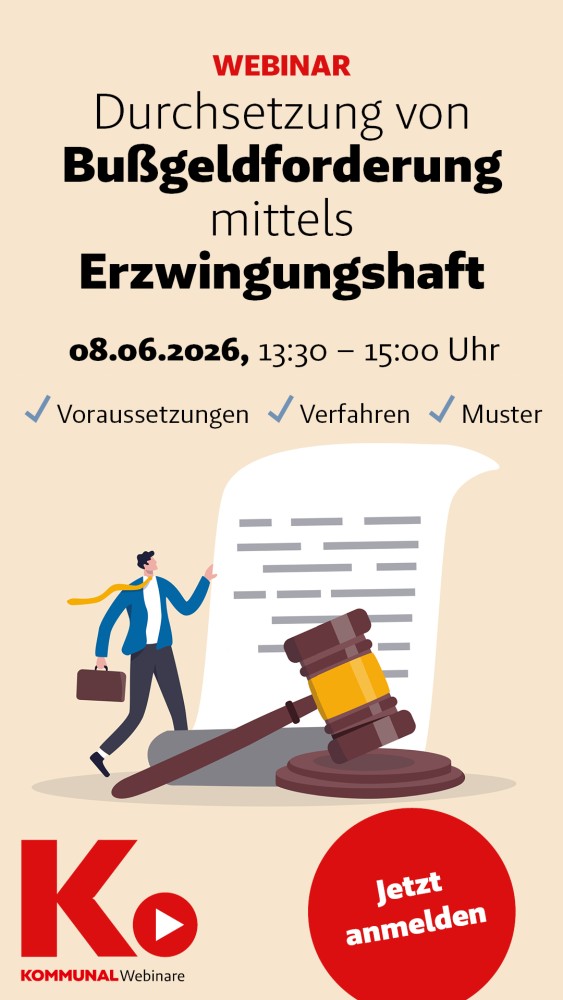 Bußgeldforderungen können aus unterschiedlichen Gründen entstehen. Geahndet wird damit immer ein ordnungswidriges Verhalten. Damit die Bußgeldfestsetzungen auch durchgesetzt werden, steht ein spezielles Vollstreckungsinstrument zur Verfügung - die Erzwingungshaft. In diesem Webseminar werden die Voraussetzung der Erzwingungshaft erörtert. Außerdem wird eine entsprechende Androhung und ein Antrag vorgestellt sowie das Verfahren erläutert. Zudem wird auf die Anordnung einer angemessenen Arbeitsleitung bzw. Jugendarrest bei Jugendlichen bzw. Heranwachsenden eingegangen.